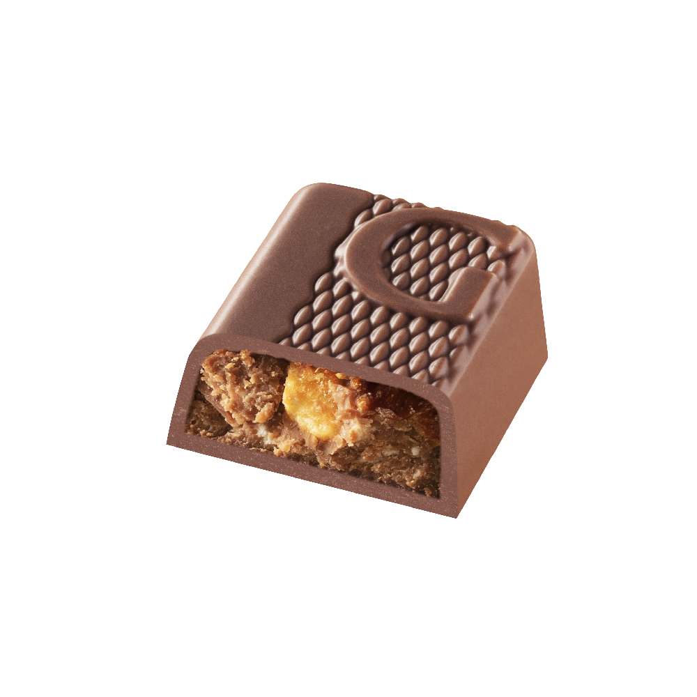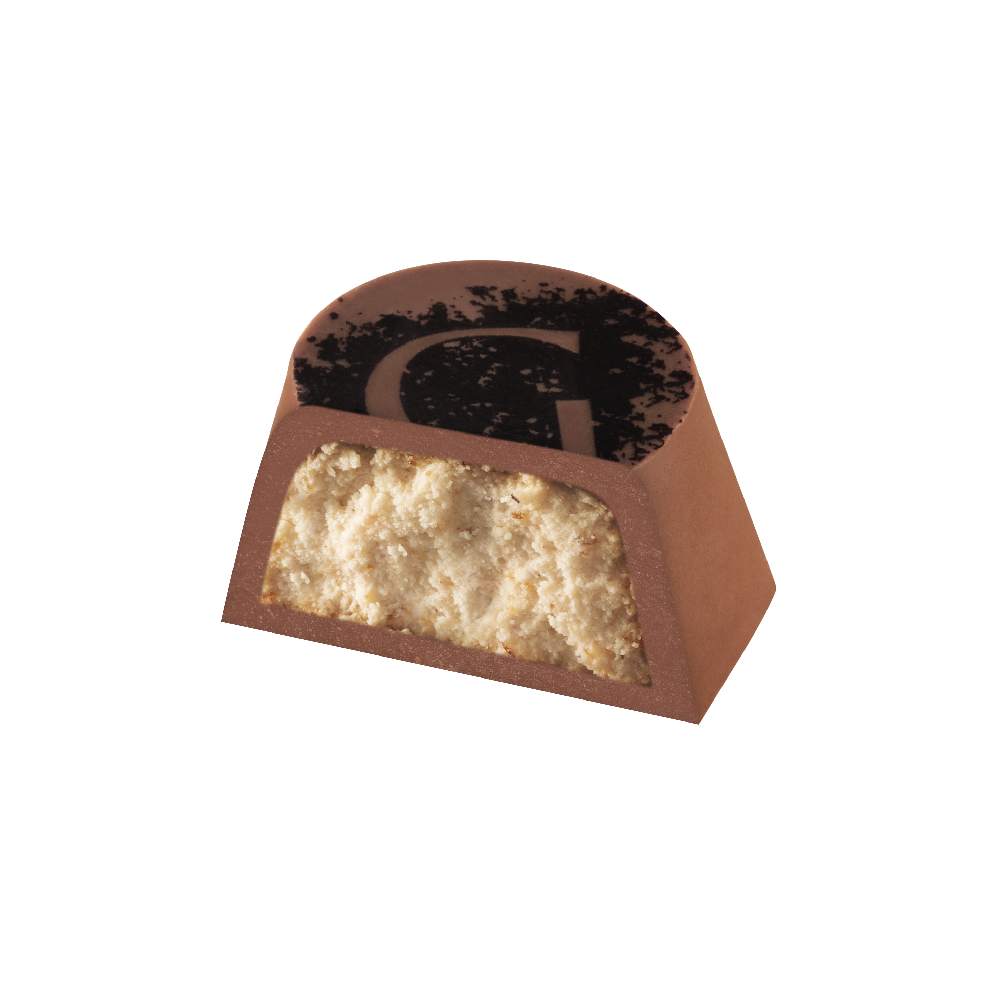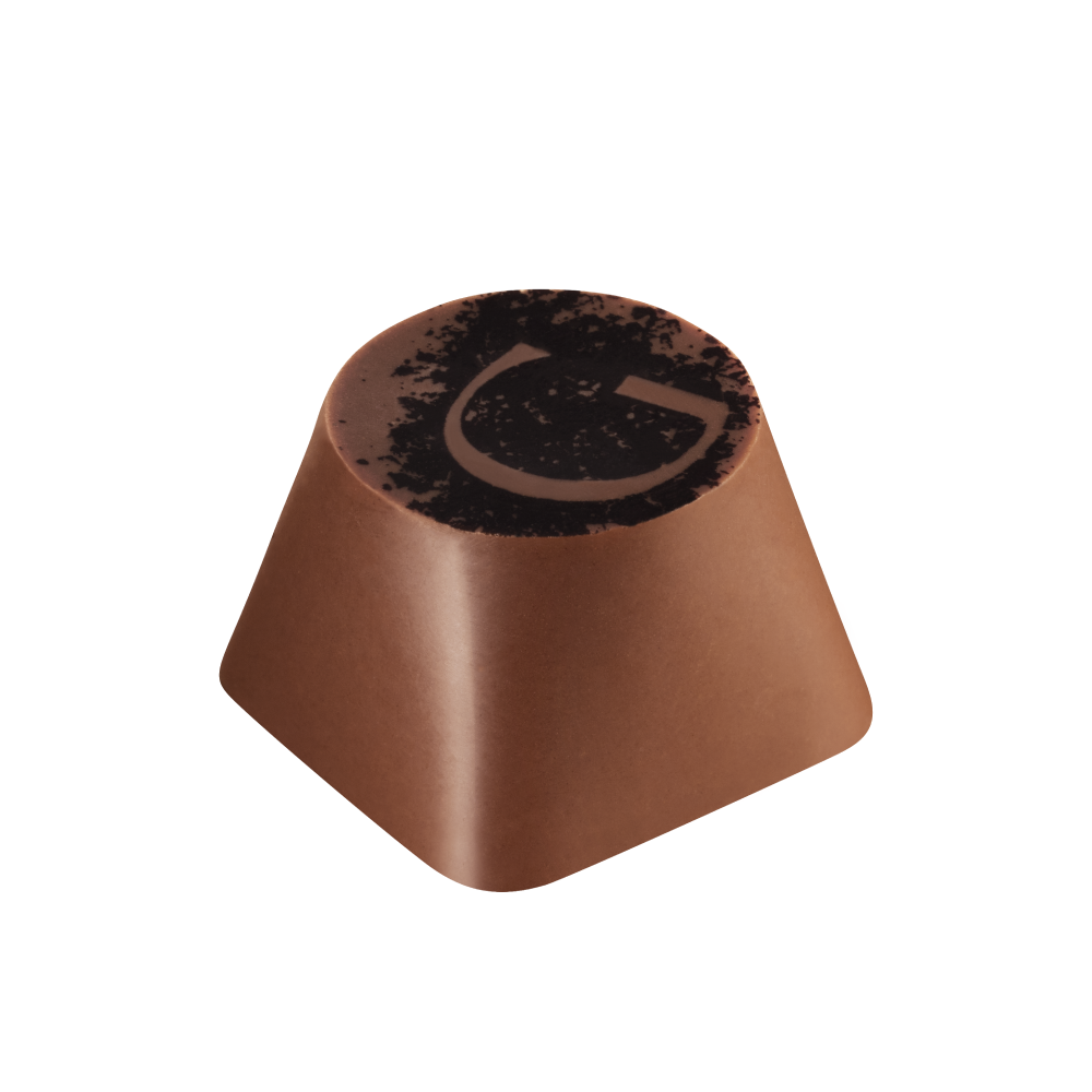 A light and smooth blond chocolate mousse combined with our unique slightly salted caramel, surrounded by creamy milk chocolate and decorated with our signature G.