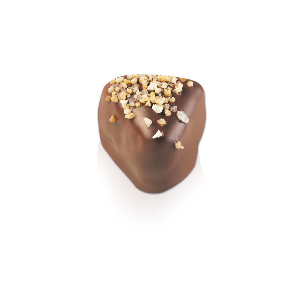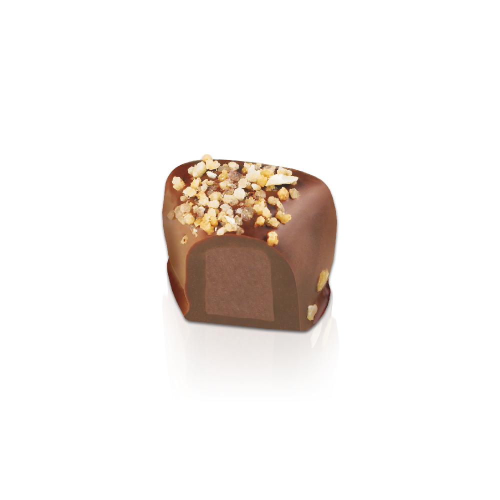Our celebrated hazelnut praliné balanced with rich, caramelised macadamia nuts and crisps of biscuits with a luscious milk chocolate shell.