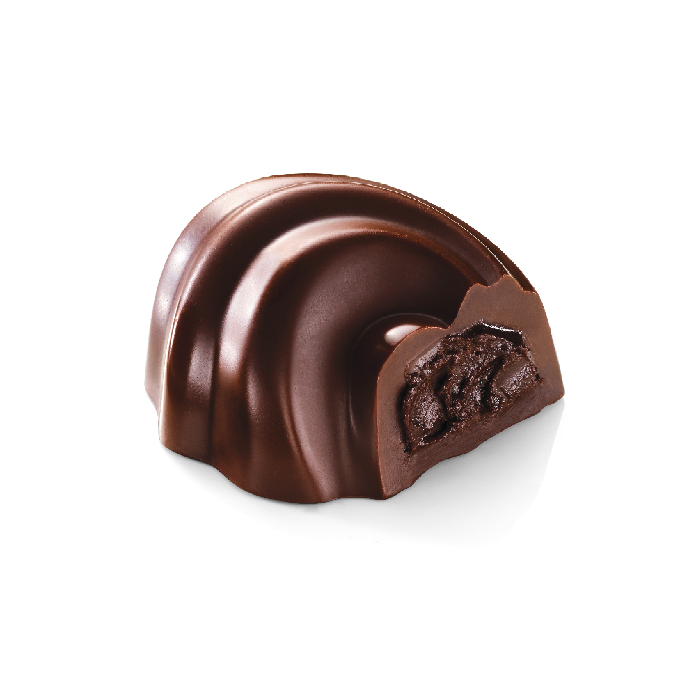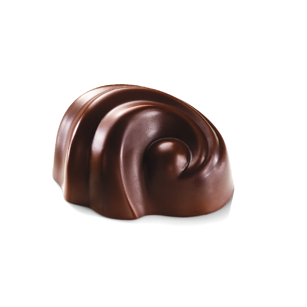 A velvety 85% chocolate ganache in a chic, Art Nouveau-inspired dark chocolate swirl.